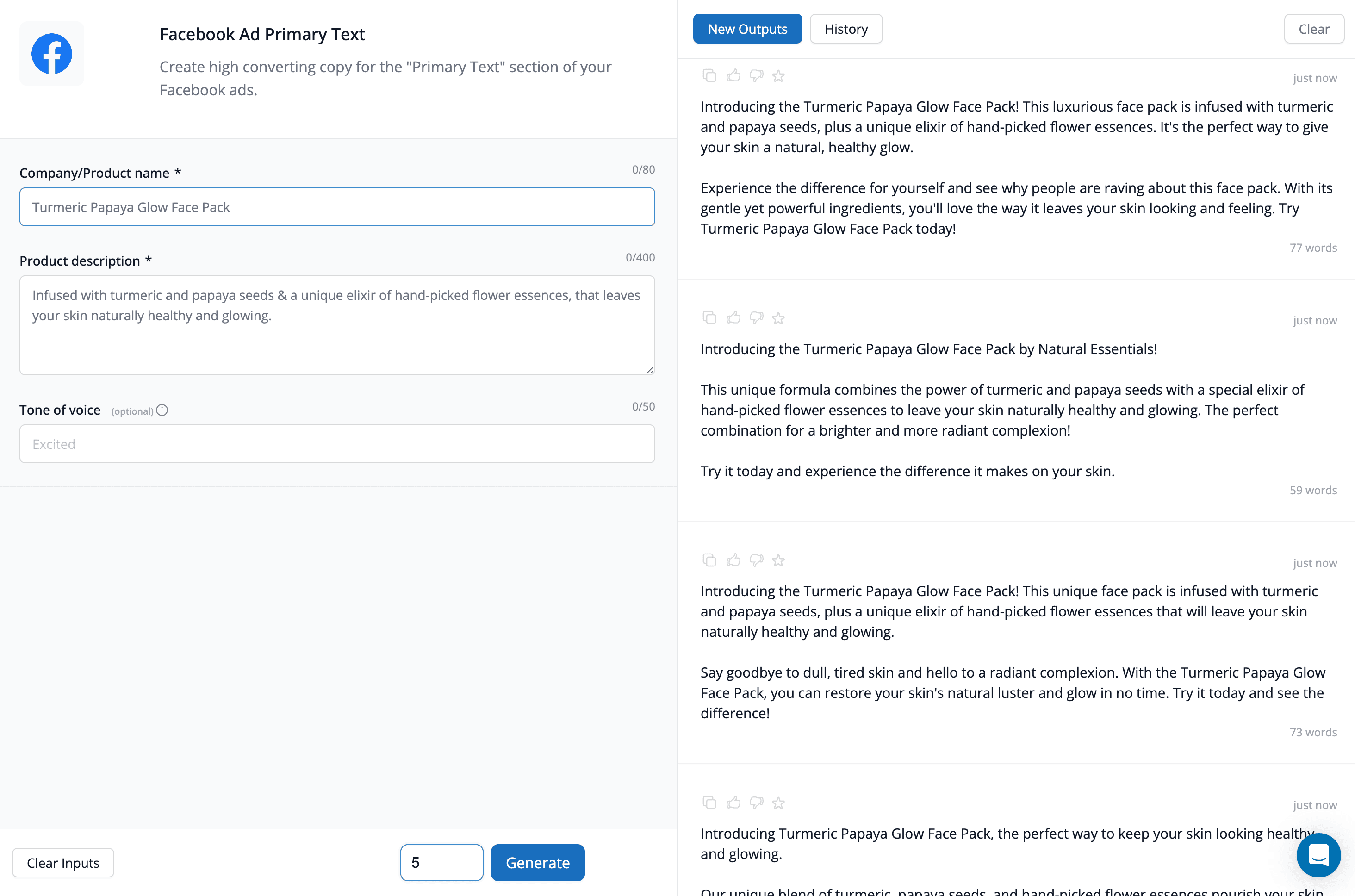 Boost your conversions, increase your CTRs, and reduce your cost-per-click with our high-quality ad copy tools for Facebook, Google, and other media. Your brand will experience immediate results with these ad copy tools.