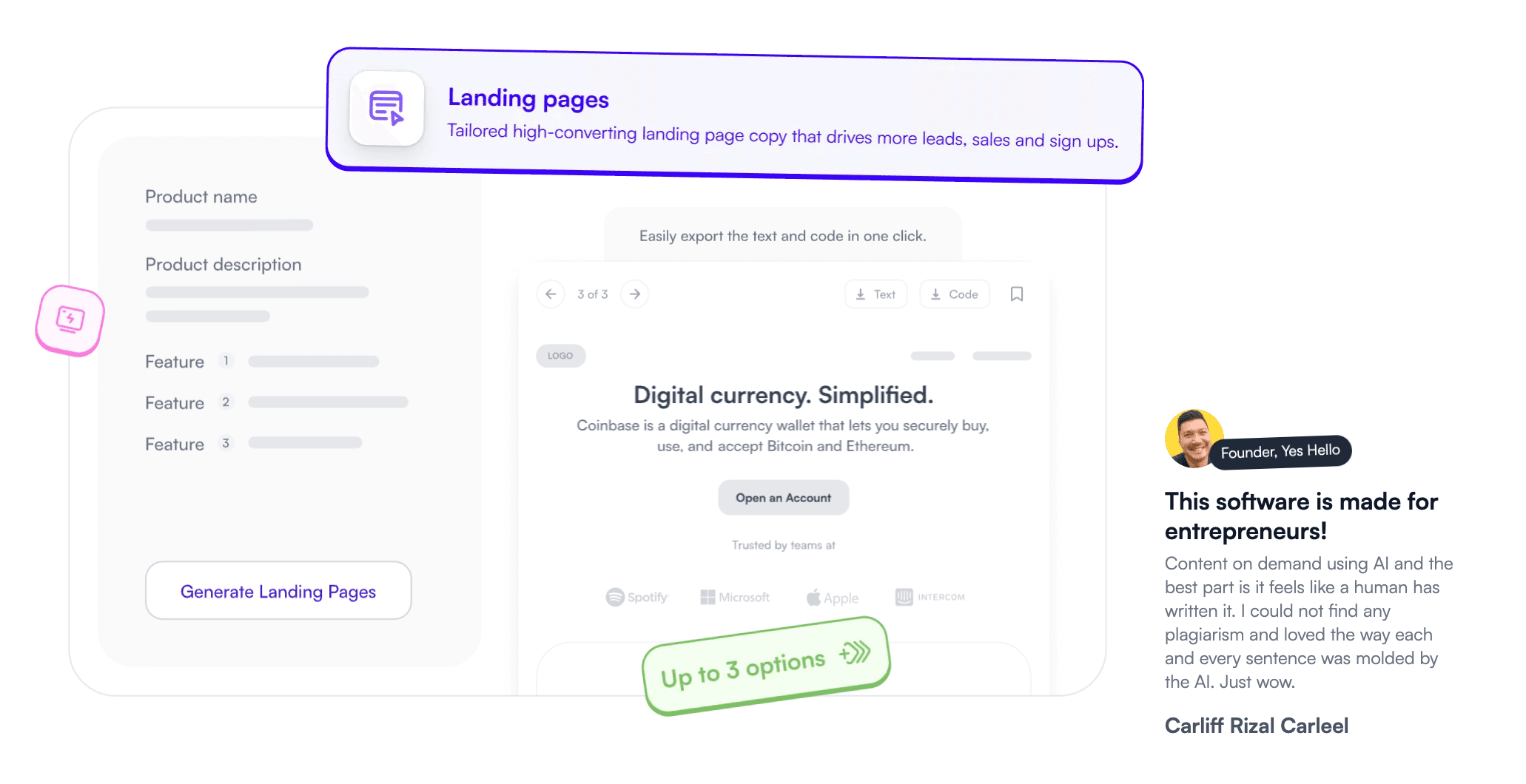 Create high-converting landing page copy with minimal input. Furthermore, generate new ideas for your new startup and use our growth ideas generator to get innovative ideas to grow your business.